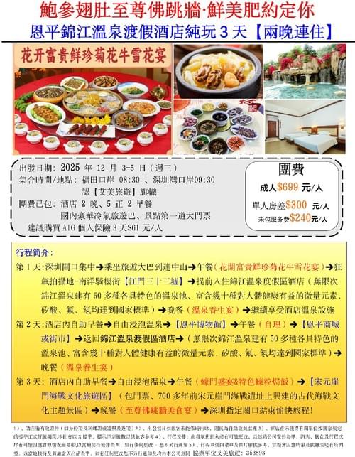 地點:恩平錦江溫泉渡假酒店 3日2夜純玩團